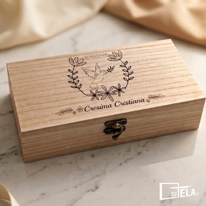 Scopri la perfezione nei dettagli con la nostra scatola personalizzata incisa al laser, progettata per unire estetica raffinata e funzionalità. Con dimensioni compatte di 10x20x5 cm, questa scatola è ideale per custodire oggetti preziosi, regalo personalizzato, regali speciali o prodotti artigianali, valorizzandoli con un tocco distintivo ed esclusivo.