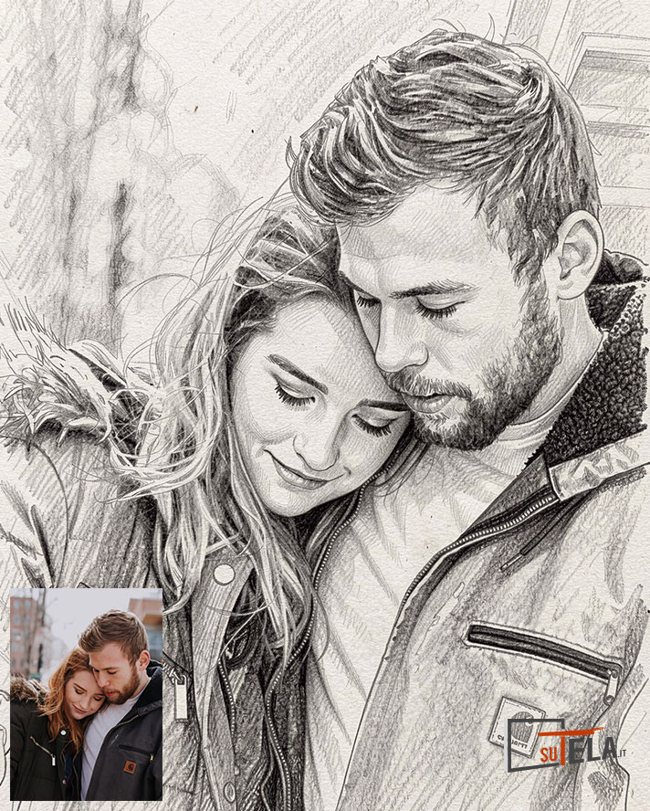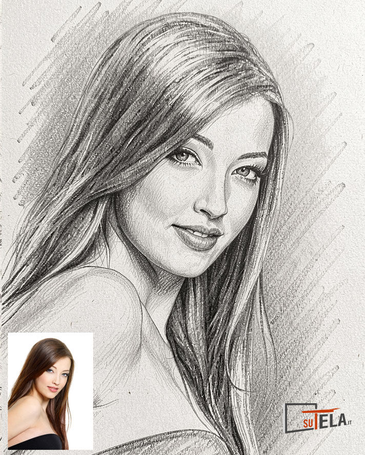 Il ritratto a matita è sicuramente uno dei più diffusi per la sua semplicità, consiste nell’ottenere sfumature di chiaro scuro con la pressione della matita su un foglio di carta. Attraverso la tecnica digitale con uso di software fotografici e la nostra immancabile tavoletta grafica, siamo in grado di realizzare il tuo ritratto a matita partendo da una foto, senza artefatti e senza imperfezioni. Puoi stampare il tuo ritratto su tela o su foto incorniciata, puoi realizzare delle magliette o prodotto stampabile con la tua immagine.