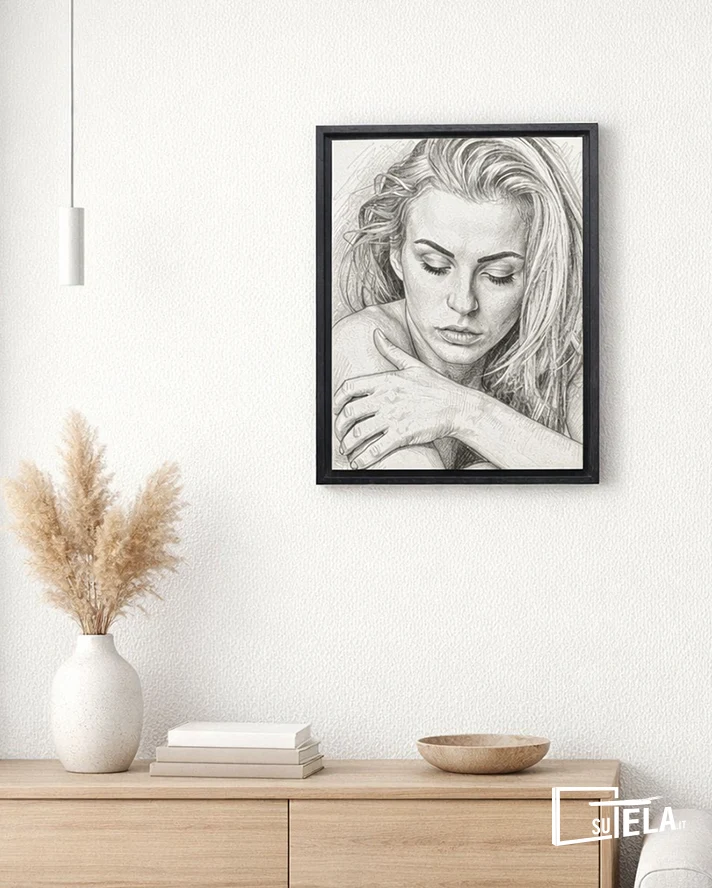 Mi sono innamorata del ritratto digitale personalizzato che ho ricevuto. È un’opera d’arte che cattura perfettamente l’espressione e la personalità della mia persona preferita. Il disegno a matita nera su sfondo bianco è elegante e raffinato, e la stampa su tela è di ottima qualità. Lo consiglio a tutti quelli che vogliono fare un regalo originale e emozionante.