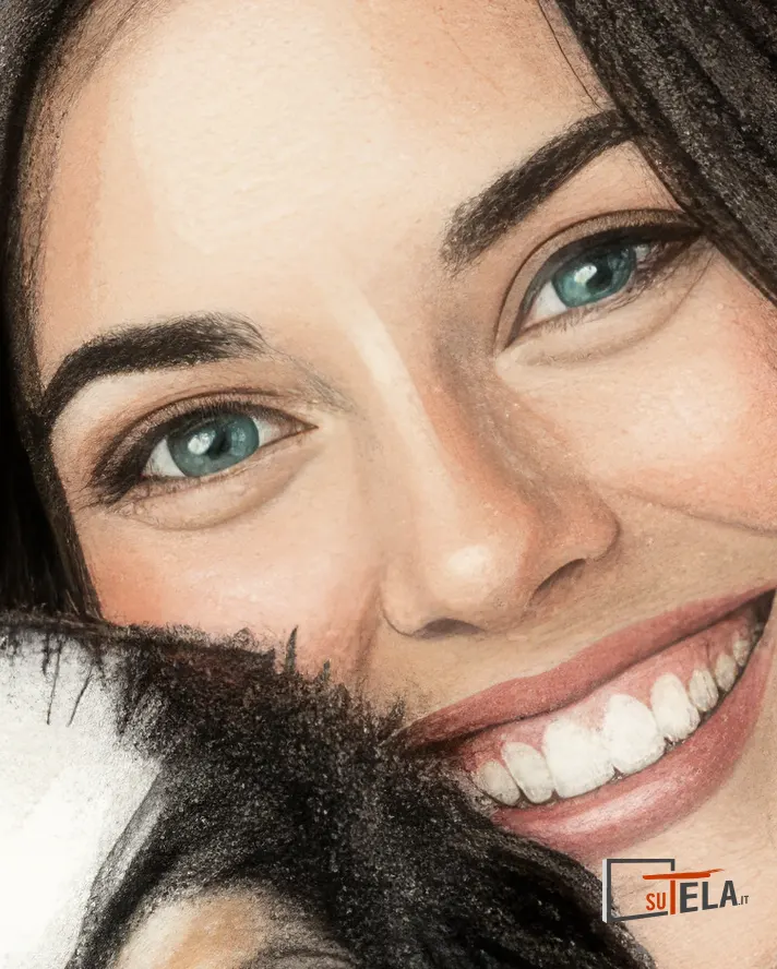 ▶ Le foto inviate vengono rielaborate e ingrandite ad una risoluzione adatta per la stampa con speciali software in modo da non perdere i dettagli, vengono corrette le luci e l'esposizione, eliminata la grana della foto se questa è stata fatta con scarse condizioni di luce e infine lavorata con la tecnica che avete scelto. Questo garantisce un lavoro ottimizzato per tutti i formati di stampa senza artefatti e garantendo la massima qualità nei dettagli e nei colori del vostro ritratto.